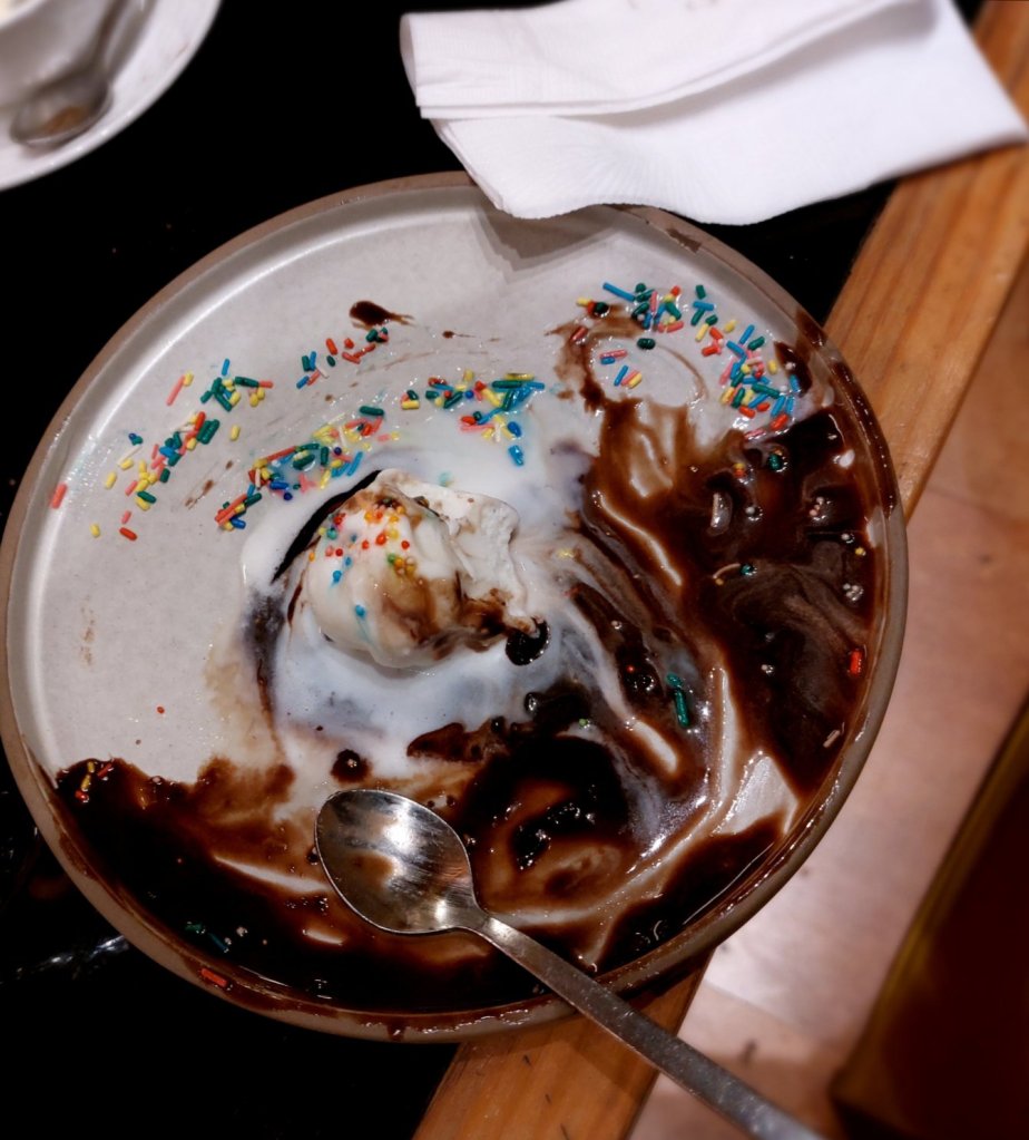 My ice cream arrived and it was a bit cute garnishing it with rainbow sprinkles on top, it took me to my childhood full of colours, fun and joy.