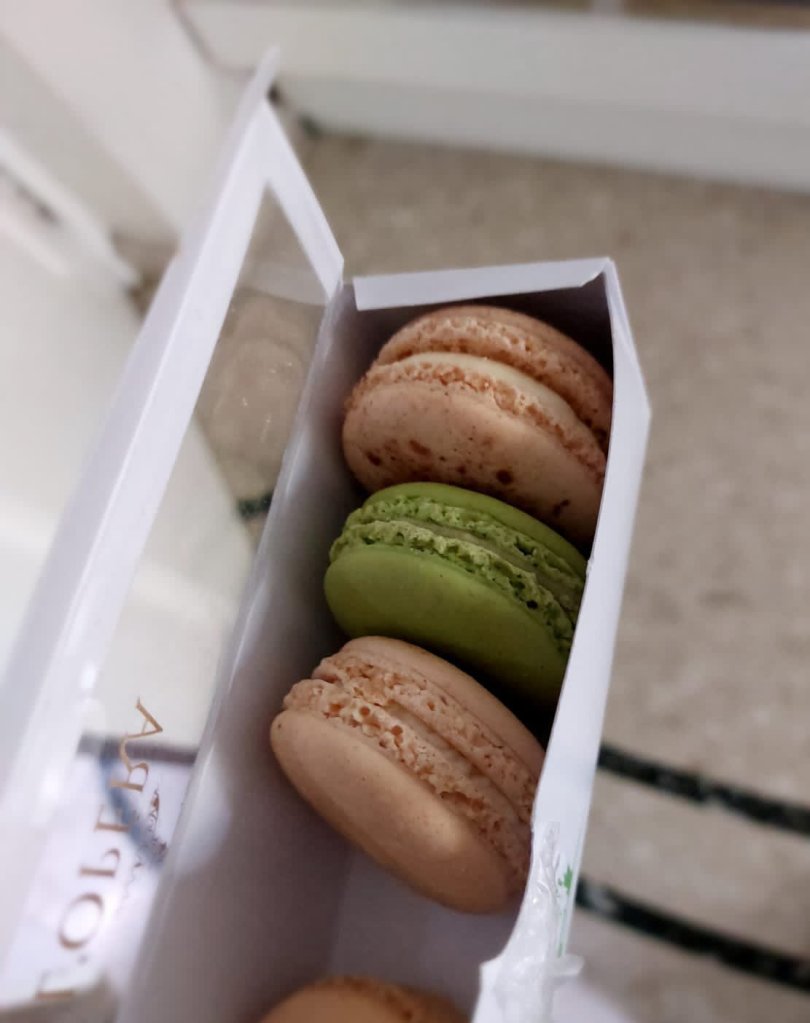 I asked him to order whichever flavor of macaron he is familiar with and tastes the best, so he ordered french vanilla, pistachio, and coffee-flavored macarons. Around 7:30 p.m. our macarons were delivered and Brother brought them into the room, packed in a beautifully designed box in which the macarons were kept stacked. I was advised to first try the French Vanilla cream-flavored macaron so I took a bite of it and it was like a splash of cold water on my face reaction was AMAZINGGGGGGG!!!. The macaron was crunchy from the inside corners with a soft and smooth look like a cloud, literally, it was like a crunchy cloud in the mouth. Within a bite, I felt .softness, crunchiness, and chewiness in an order with the boom of authentic french vanilla flavored cream which was subtle in flavor, the creamy texture was perfect with the correct amount of sweetness.