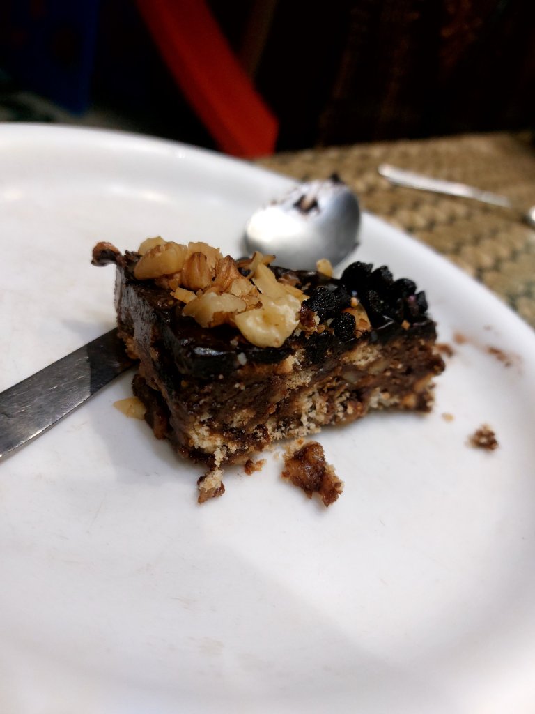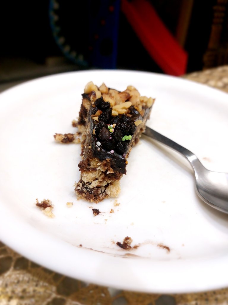 Hallucinating in my own world I was lying on my couch with eyes stuck on the stopped ceiling fan to breeze me up with its fresh air when my sister-in-law asked me if I wanted to have some cake she made last night for a birthday party, which I denied to have since I was waiting for the light to come then I d have it with some nachos or chips, but I haven’t had lunch too so I went for the offer of the cake and sat on the dining table. As soon as the cake was kept on the plate to come on the table, the chandelier lightened…YES, IT’S HERE!!!!! The light was back with its shine and with this, I broke my blackout fast with a smooth bite of the crumbly biscuit base cake mixed and garnished with walnuts dark chocolate chips, and rainbow sprinkles.