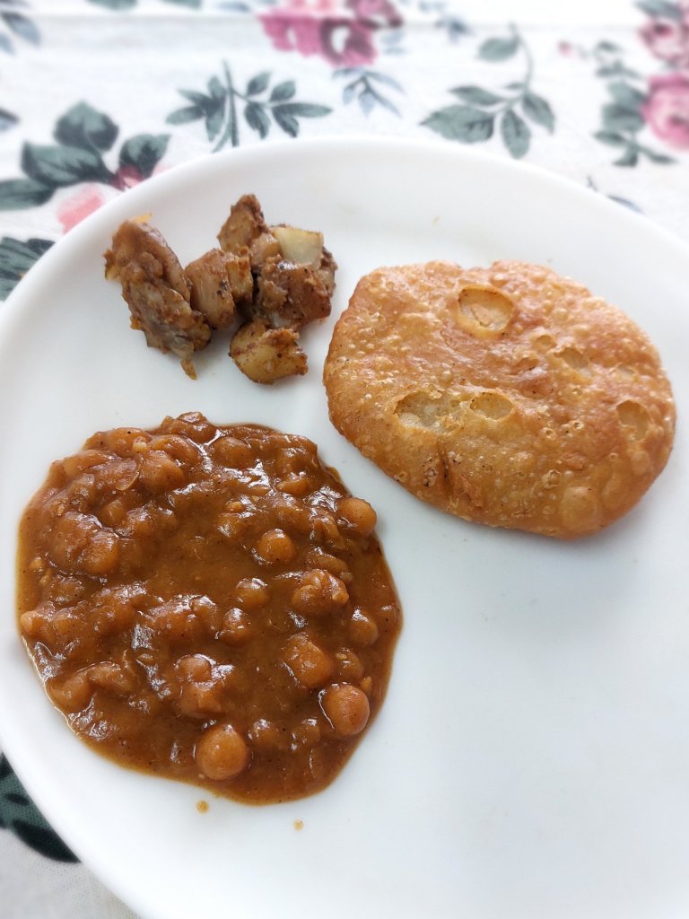 The taste was familiar to my taste buds and lip-smacking. I had been feeling a little off from the previous day but this food was a comfort. My mood uplifted in a few moments. The gravvy of chickpea curry was sensational. The Kachori was crunchy and the same time chewy. And all the three components were equally yummy.